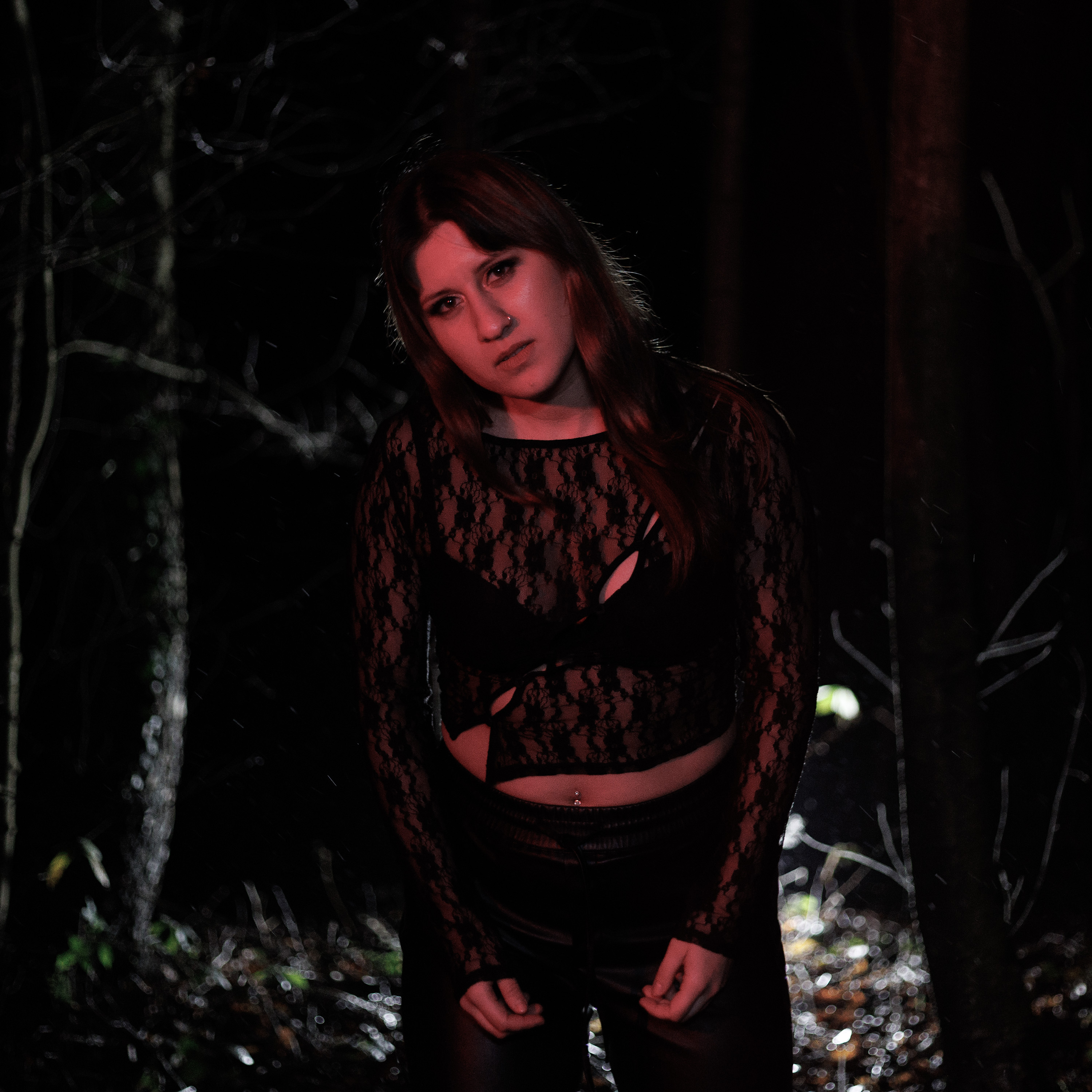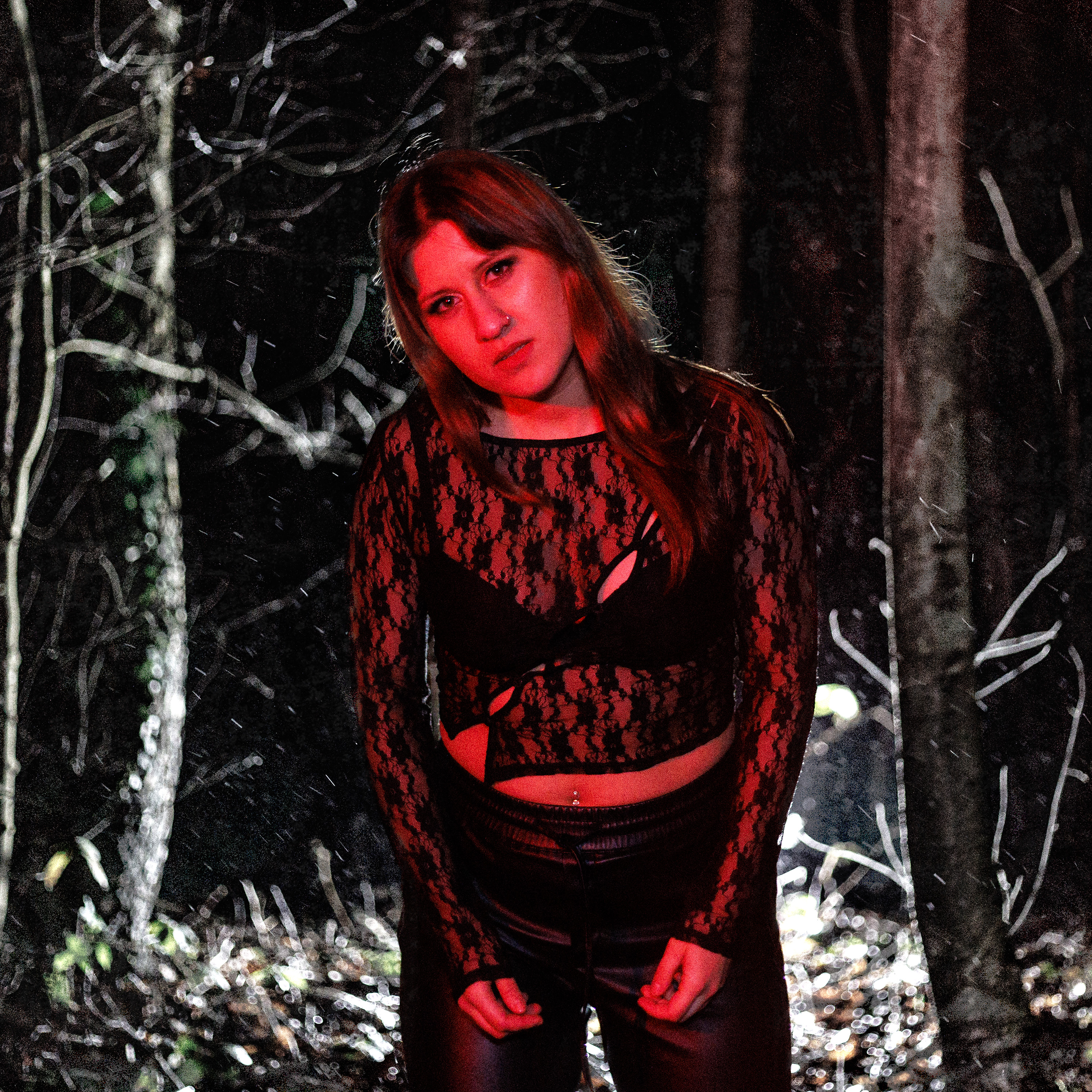 Om deze beangstigende gevoelens te vangen in de artwork, hebben we gekozen om de foto te schieten in een donker bos. Eva Lima staat in haar eentje tussen de bomen en kijkt wat angstig recht in de camera. De achtergrond wordt gevuld door drukke bomen en bewegende deeltjes belicht door een felle lamp die de bedrukkende gevoelens van een nachtmerrie reflecteren.